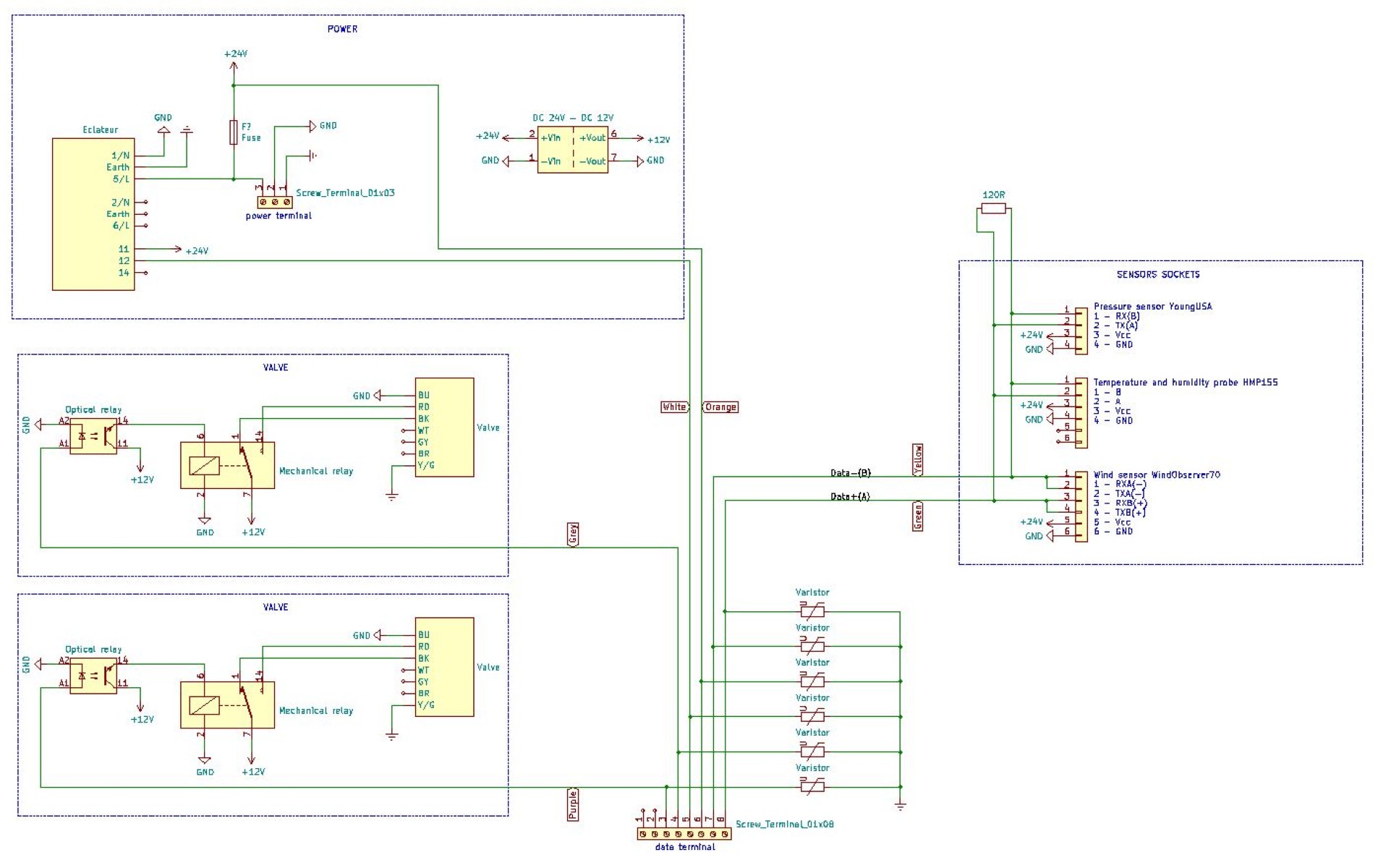 À partir de cette architecture matérielle et logicielle j'ai dérivé le système pour équiper d'autres stations plus petites. Ci-dessous l'instrumentation d'une station en Corse ne contenant qu'une seule ligne de prélèvement d'air (et donc qu'une seule électrovanne) :