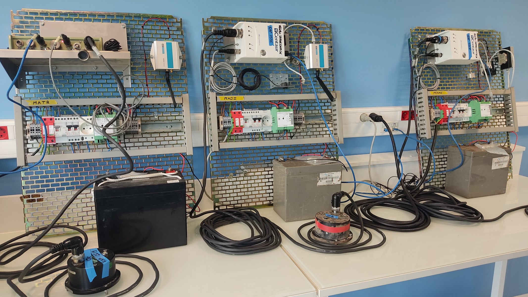 Deux versions de stations ont été réalisées : une avec alimentation sur panneaux photovoltaïques, et une sur alimentation secteur (avec batterie de backup). Les technologies de communications (4G, internet, WiFi...) quant à elles sont propres à chaque station et définies selon les contraintes de l'installation.