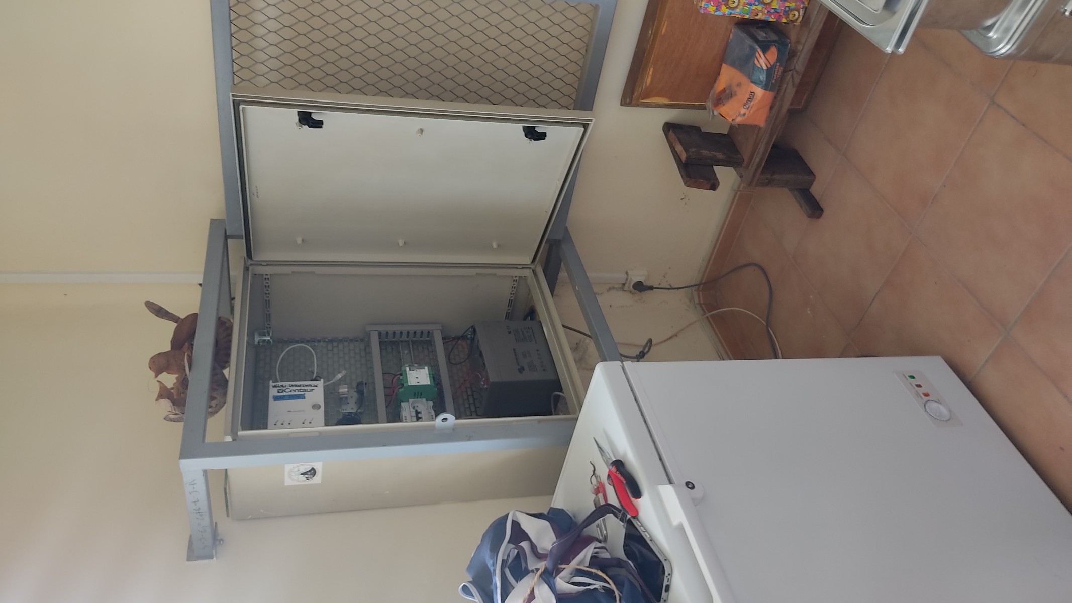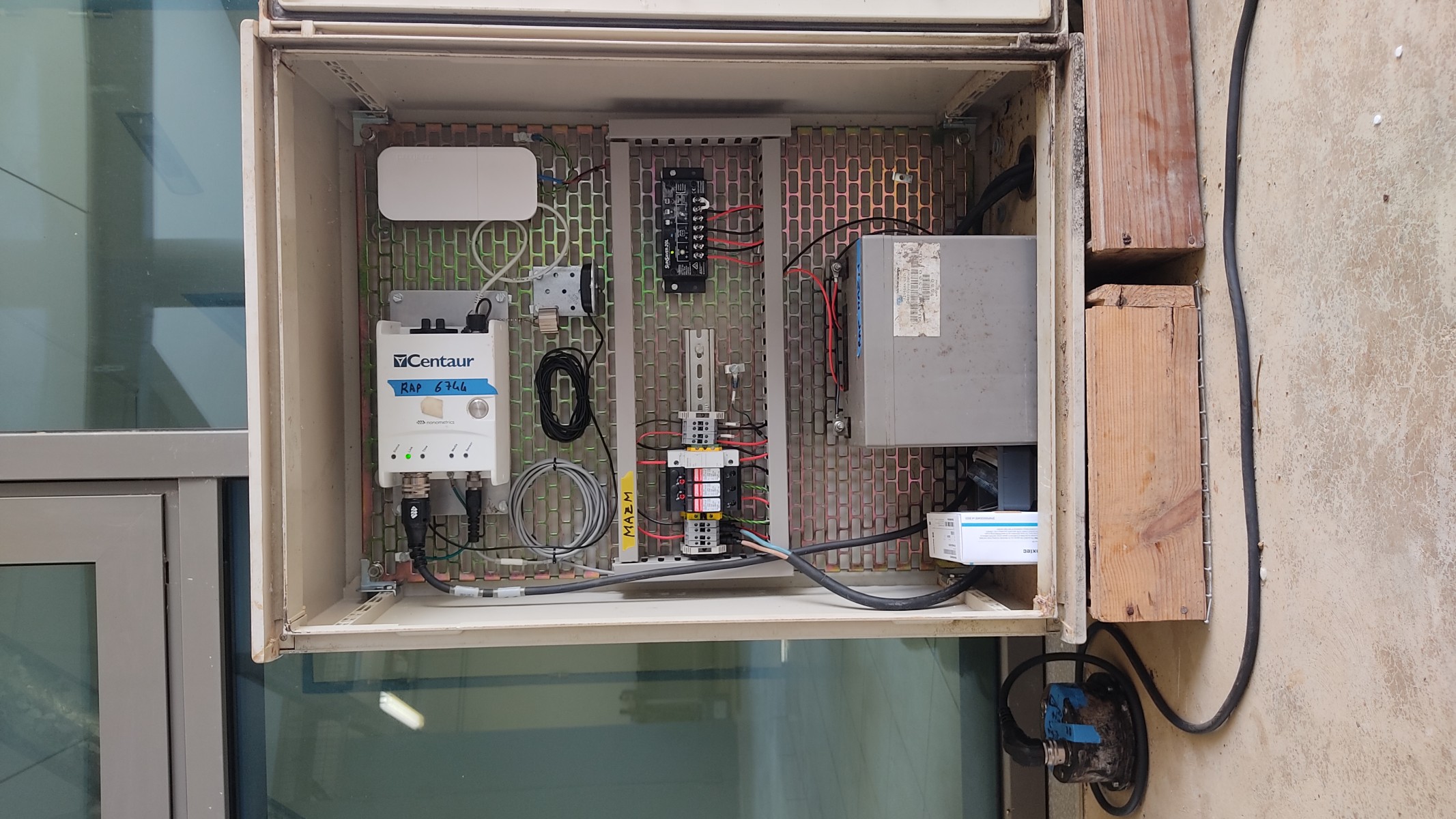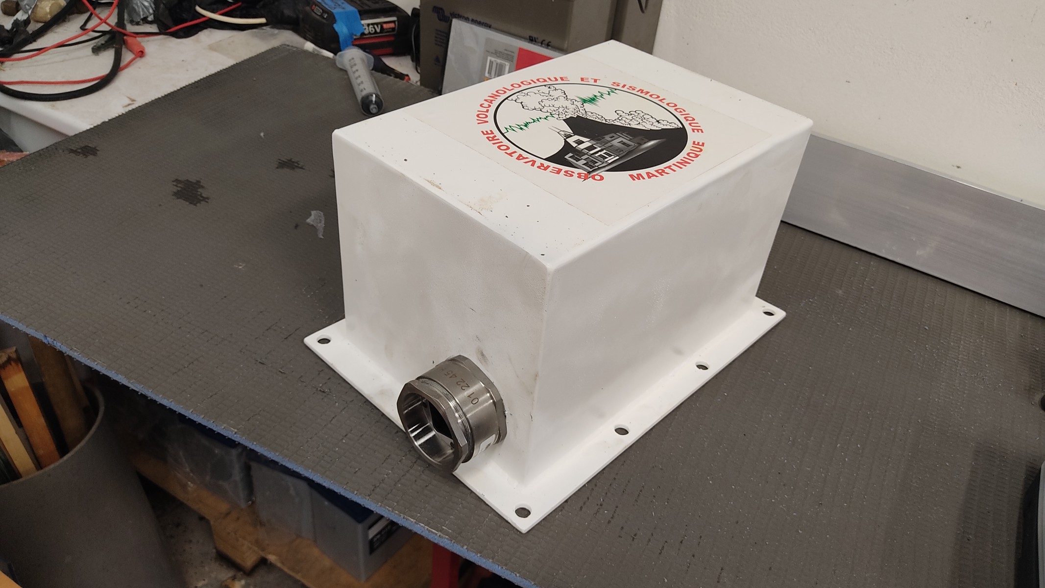 Il s'en est suivi une période de tests pour valider le bon fonctionnement des systèmes sur le long terme. Sur la photo nous pouvons voir le capteur accélérométrique posé au sol à gauche de la photo.