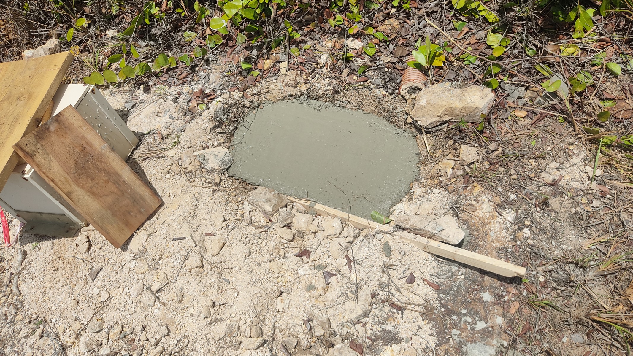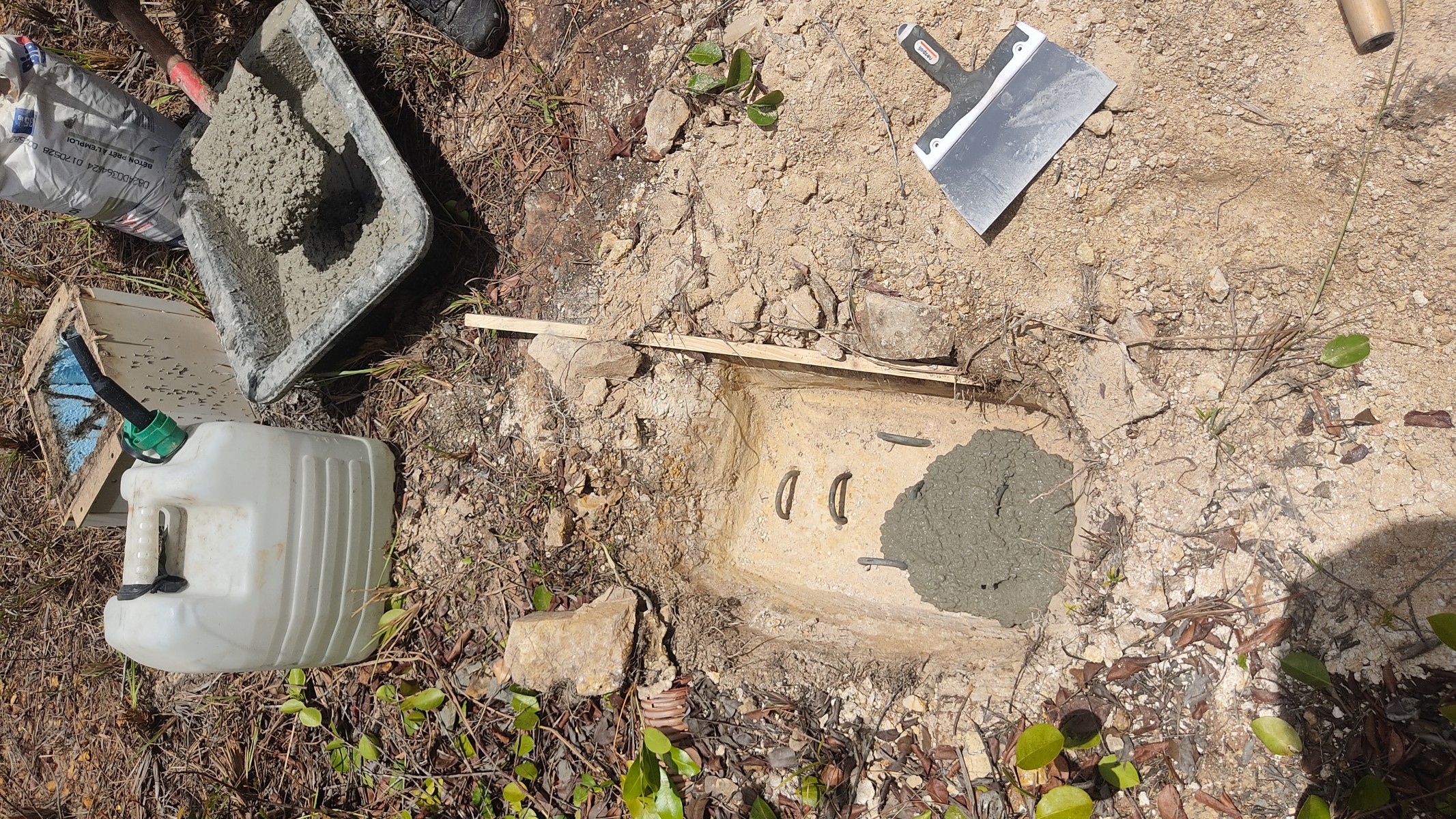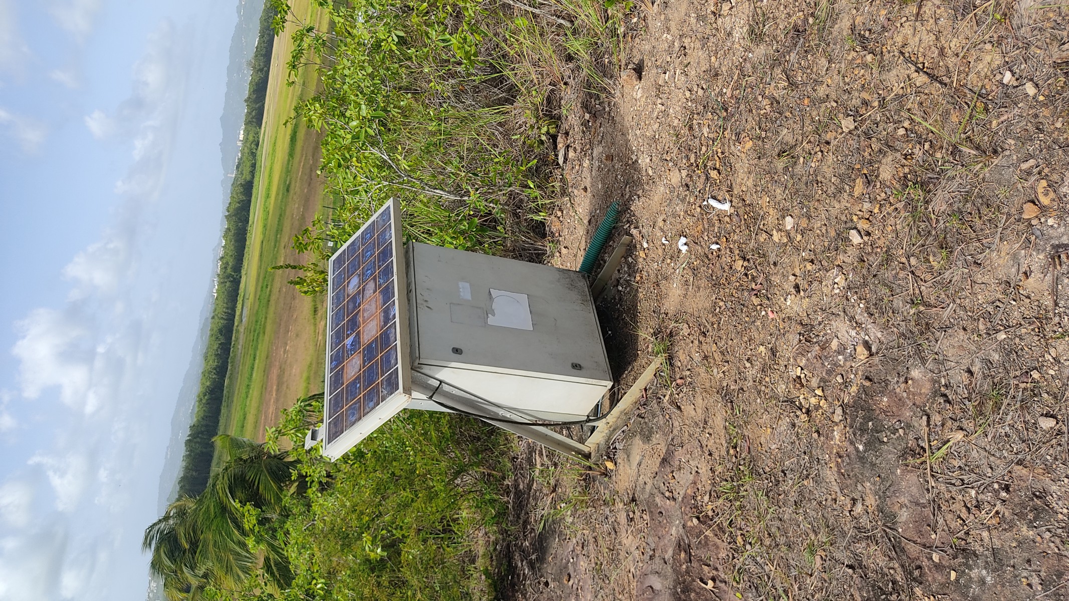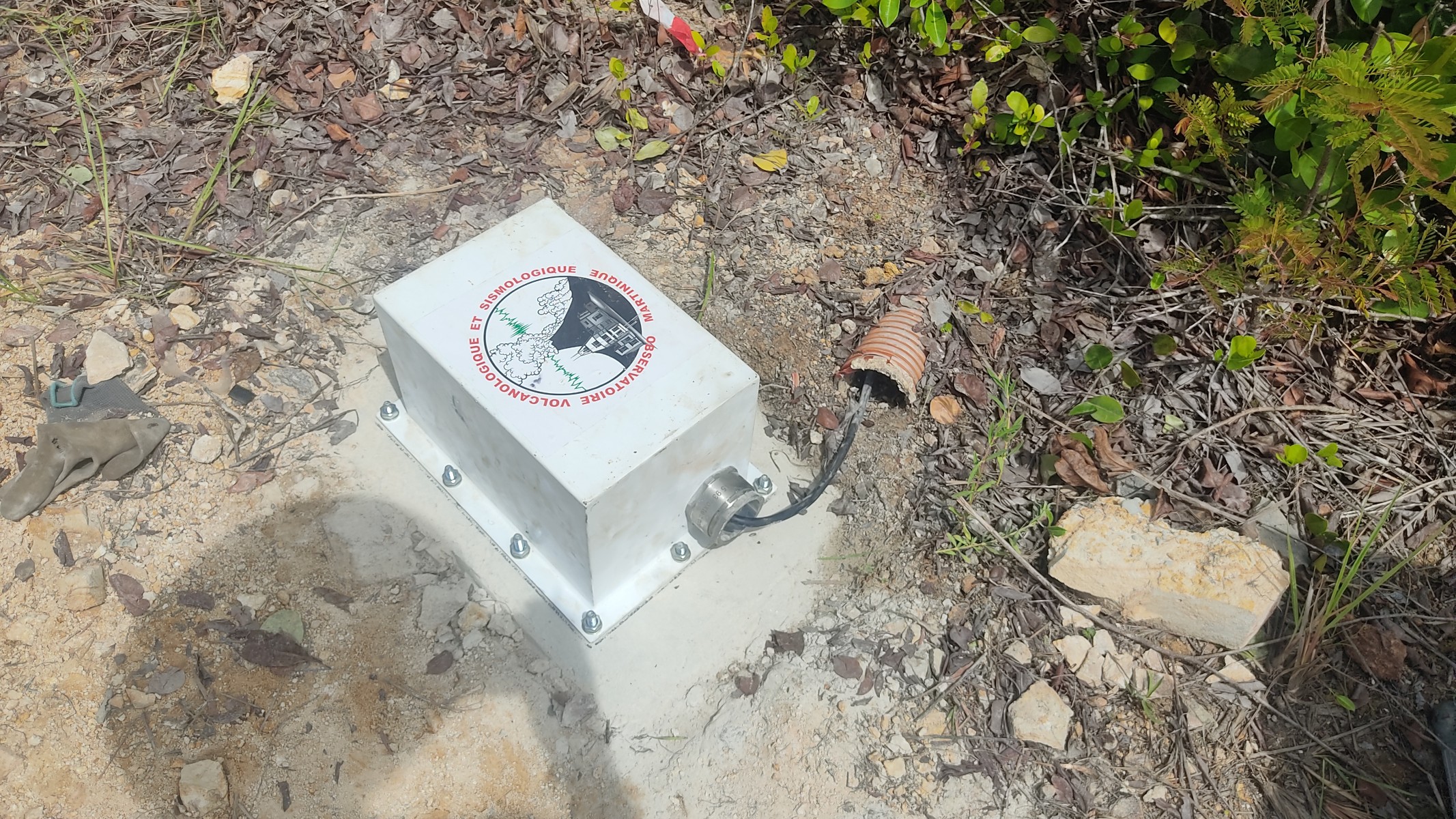La station au niveau de l'aéroport de Fort-de-France a demandé le coulage d'un socle en béton pour coupler le capteur au sol.