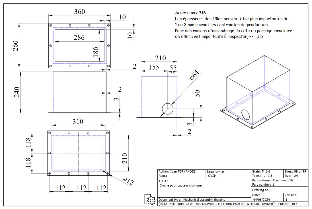 L'une des stations a nécessité la conception d'une cloche pour protéger le capteur posé en extérieur. J'ai conçu cette cloche en CAO et ai sous-traité sa fabrication chez un partenaire local.