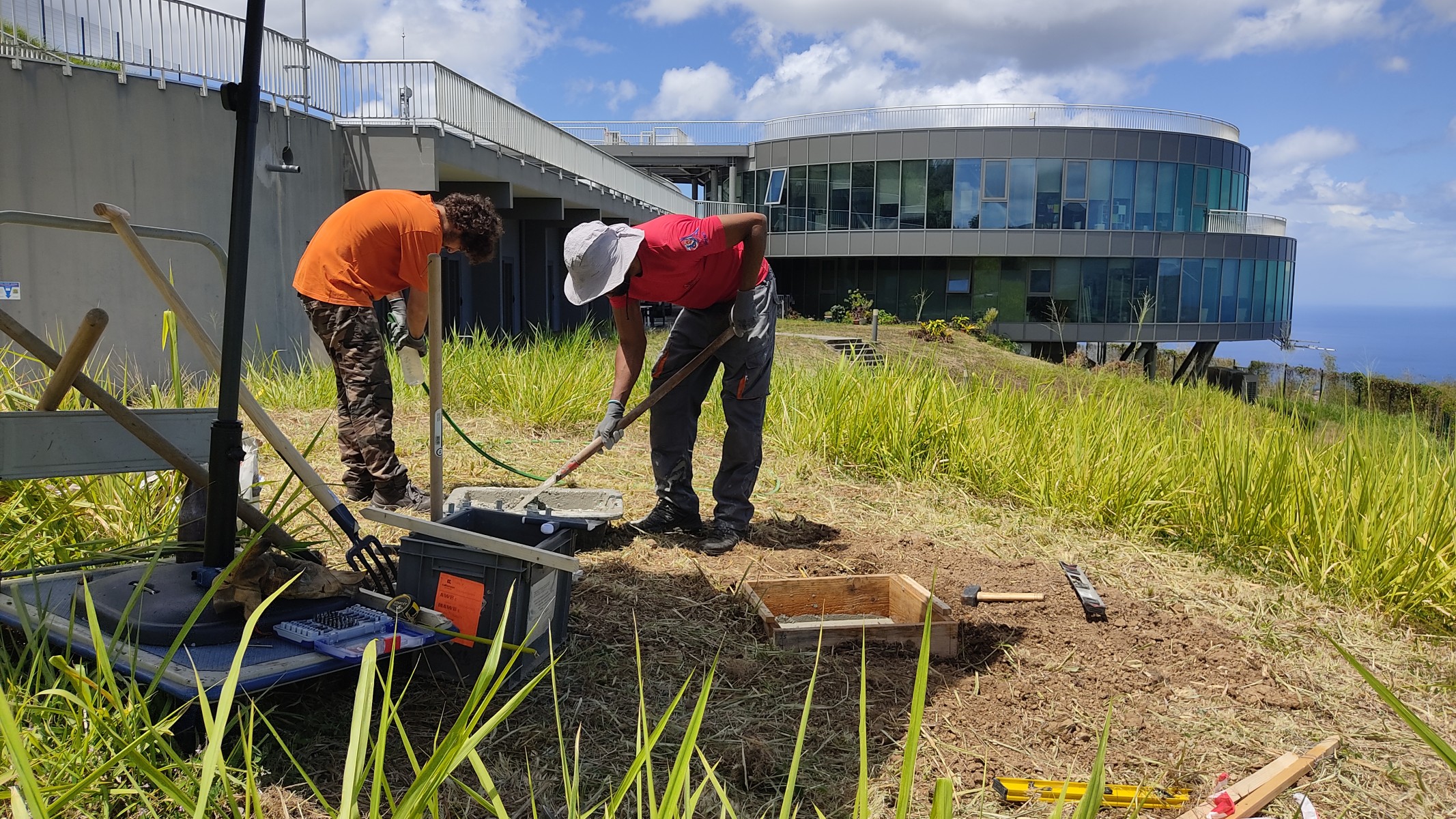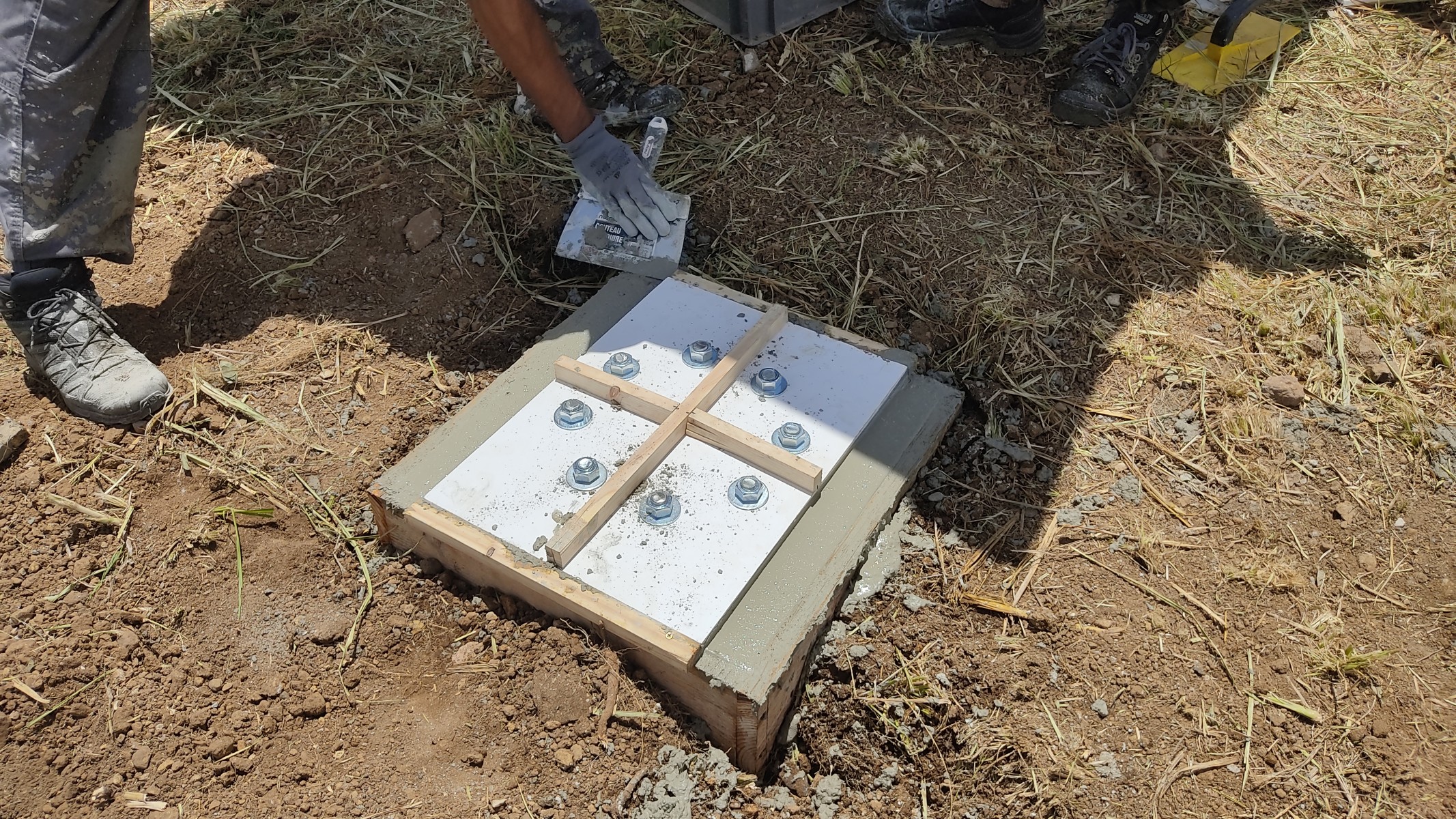 J'ai réalisé le coffrage, l'achat du matériel, le cercle de tiges filetées, ai choisi l'emplacement et ai participé avec l'équipe au coulage final puis à l'installation du mât.