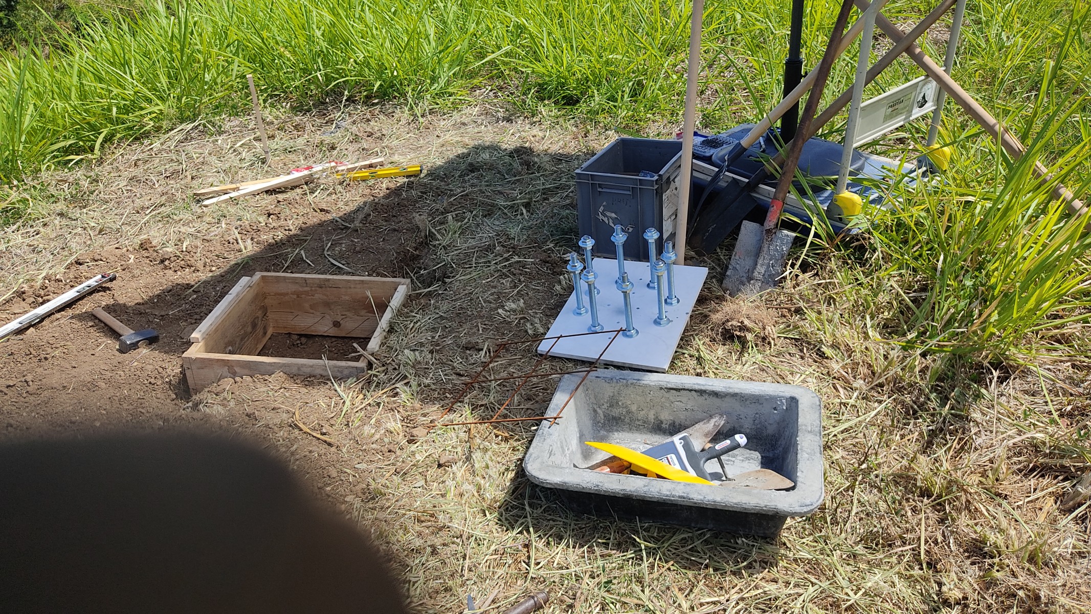 I created the formwork, purchased the materials, prepared the circle of threaded rods, chose the location, and participated with the team in the final pouring and mast installation.