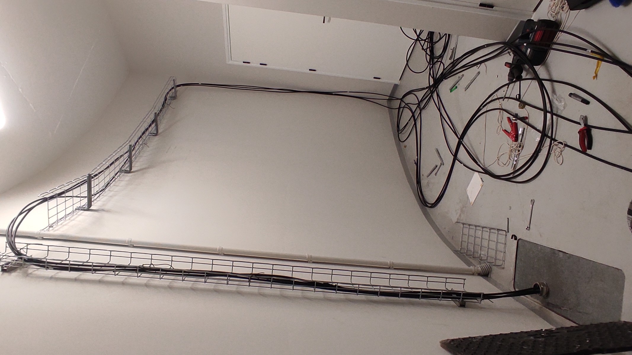 Nach dem Wiederaufbau der Kuppel und der Parabolantenne schlossen wir die Antenne an, indem wir Kabel zum IT-Rack verlegten und sie auf den geostationären Satelliten ausrichteten.